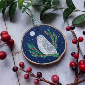 Small Bear Wood Slice Decoration – Leafy Wreath